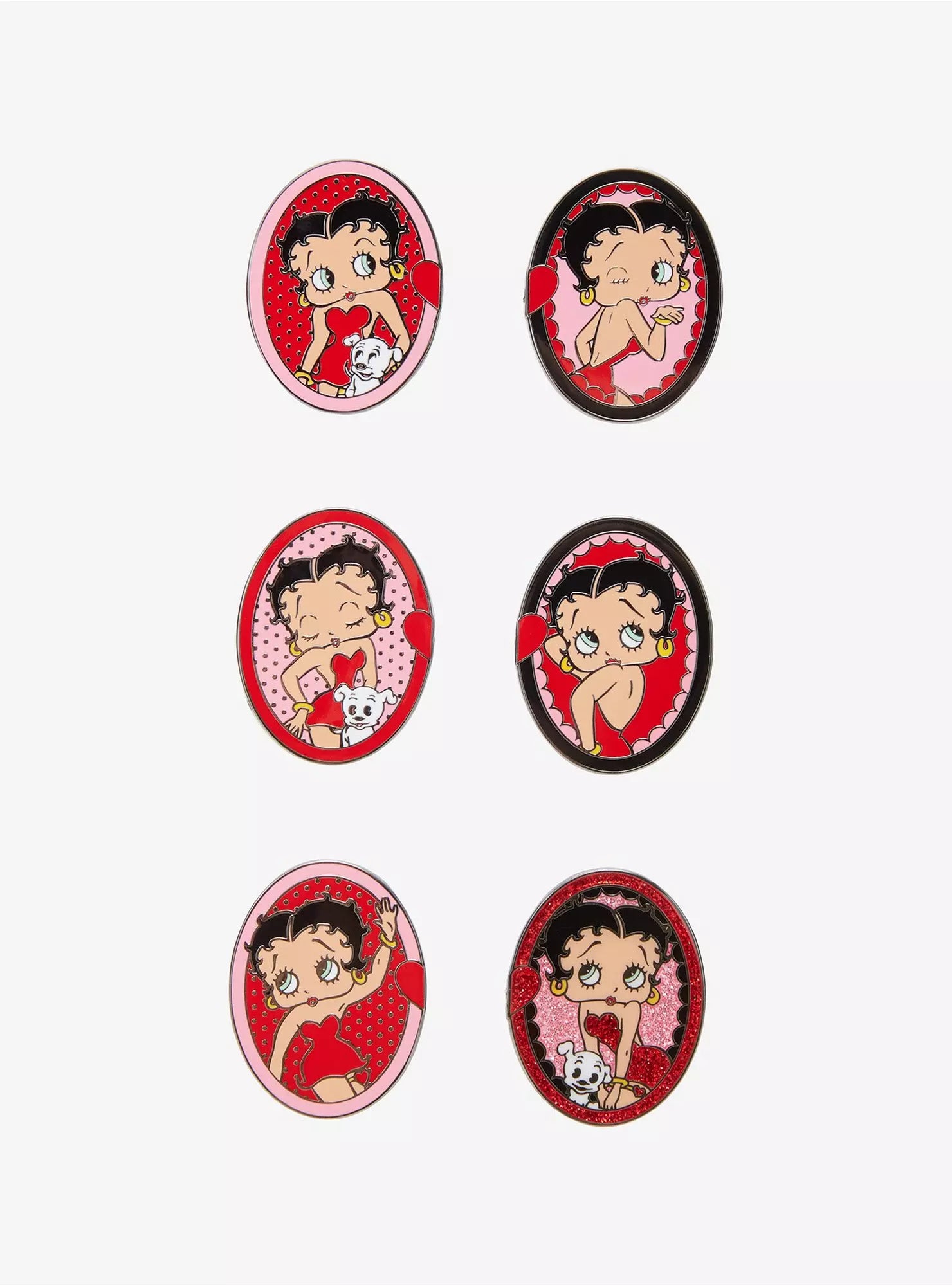 Add a little “Boop-oop-a-doop!” magic to your collection with the Betty Boop Mystery Box Magnetic Cameos Enamel Pins. Each pin features Betty in one of her most iconic poses, framed in a vintage cameo-style border with a pop of red glamour.