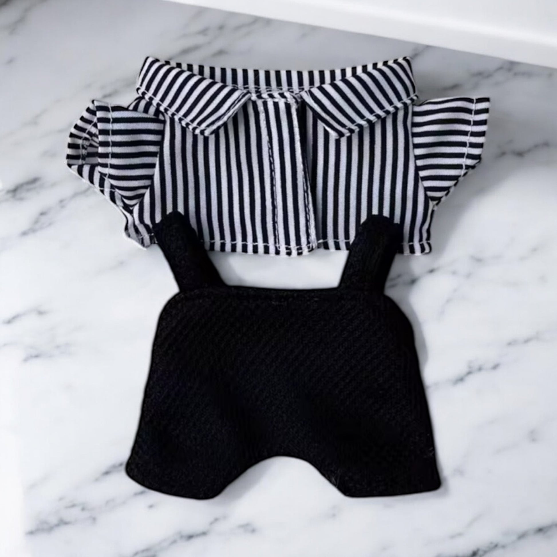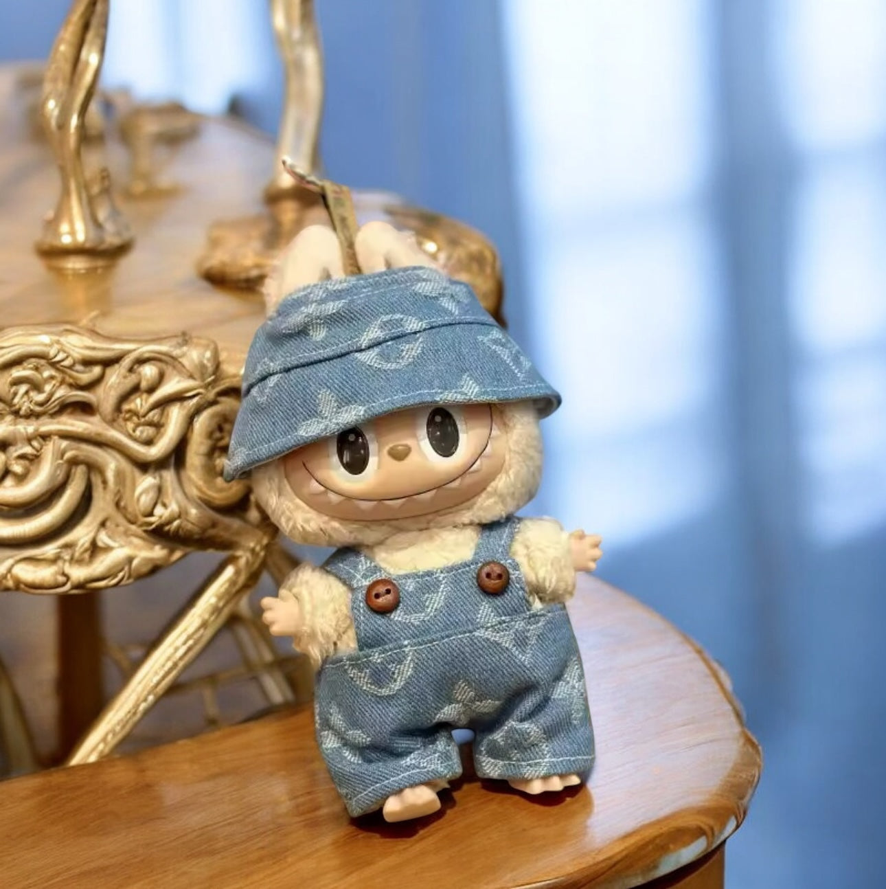 Dress up your Labubu figurine with this adorable clothing set! This quirky collection adds personality to your collectible, making it stand out from the rest. Perfect for the playful and fun-loving collector. (Outfit only, figurine not included.)