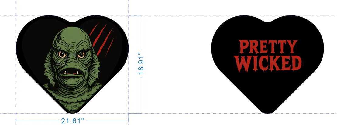From the depths of the lagoon straight to your arms! Meet our Creature Heart Tote. A killer mix of creepy and cute, this oversized heart-shaped bag features the classic monster on one side and our Pretty Wicked logo slashed in blood-red on the other. Roomy, durable, and wickedly stylish—perfect for ghouls who carry it all.